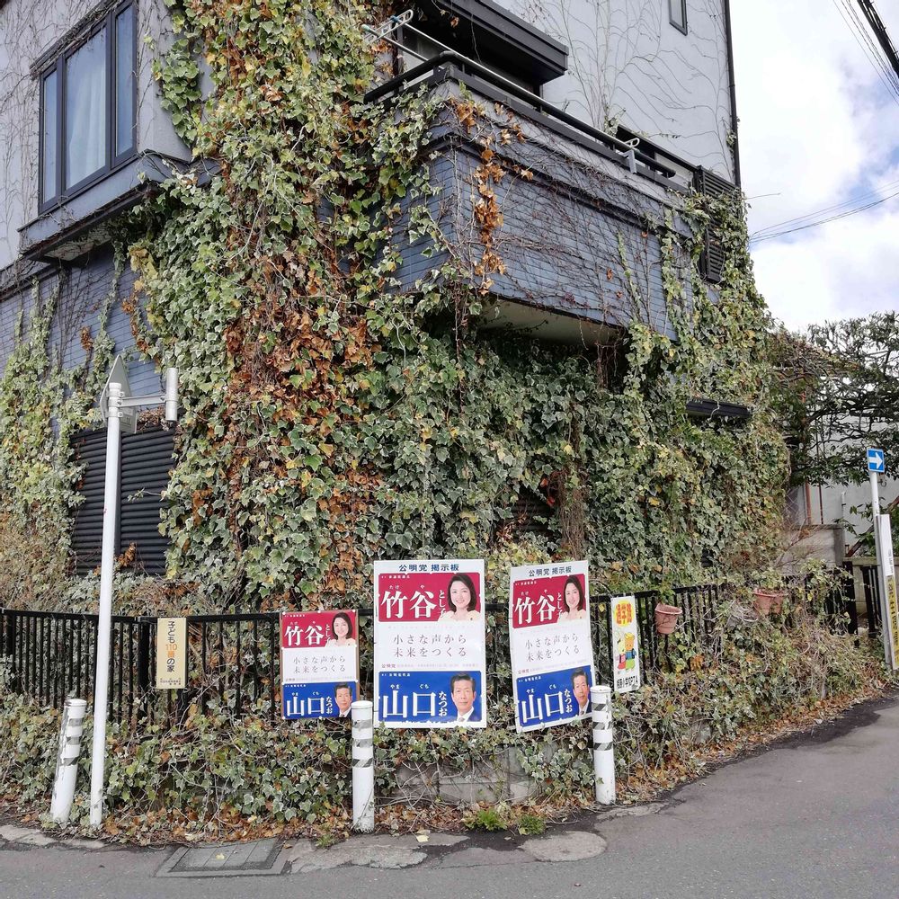 まずは 空き家 に貼られた 選挙ポスター から、、、