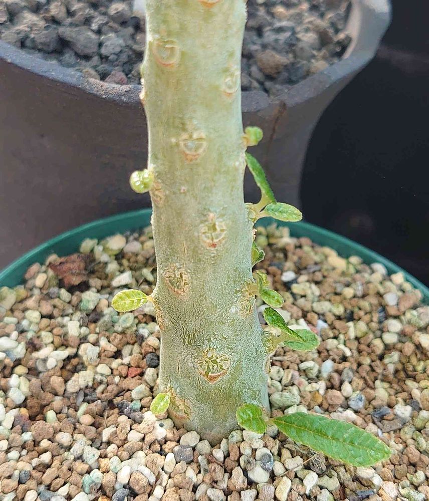 日本で見かける、実生や挿し木とは違う植物かと思う程に違う見た目で、非常にデップリした塊茎からチョボチョボと枝や葉っぱが生えています💚