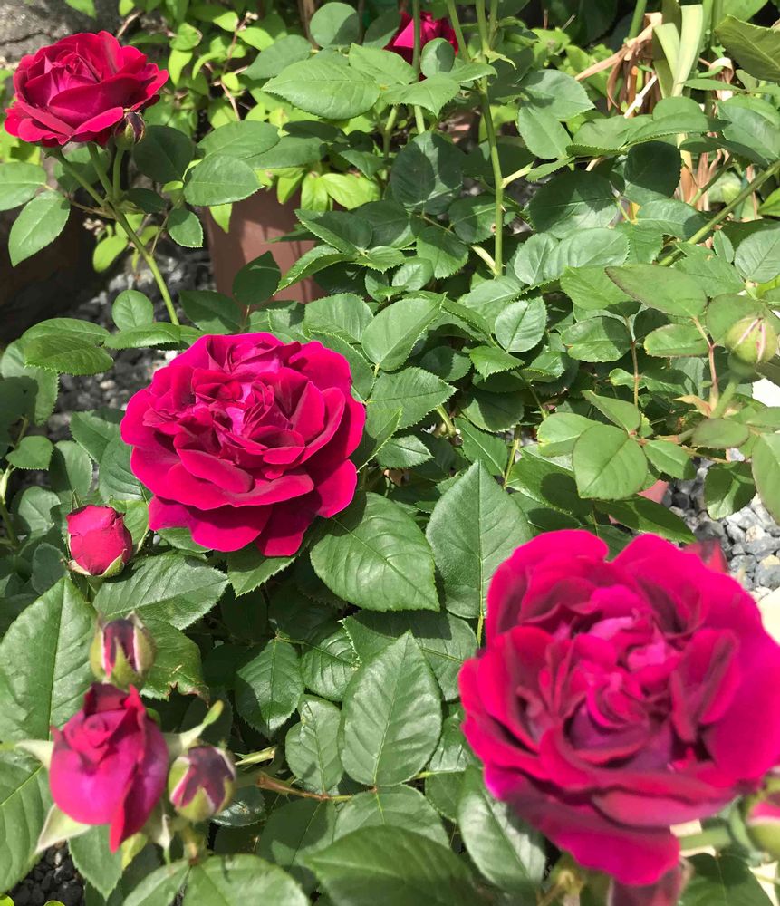 四季咲きではありません。香りは強いほうです。トゲは少ないです。咲き進むと紫色っぽい花色になります。この薔薇の名前を知っている方、教えて下さい😌