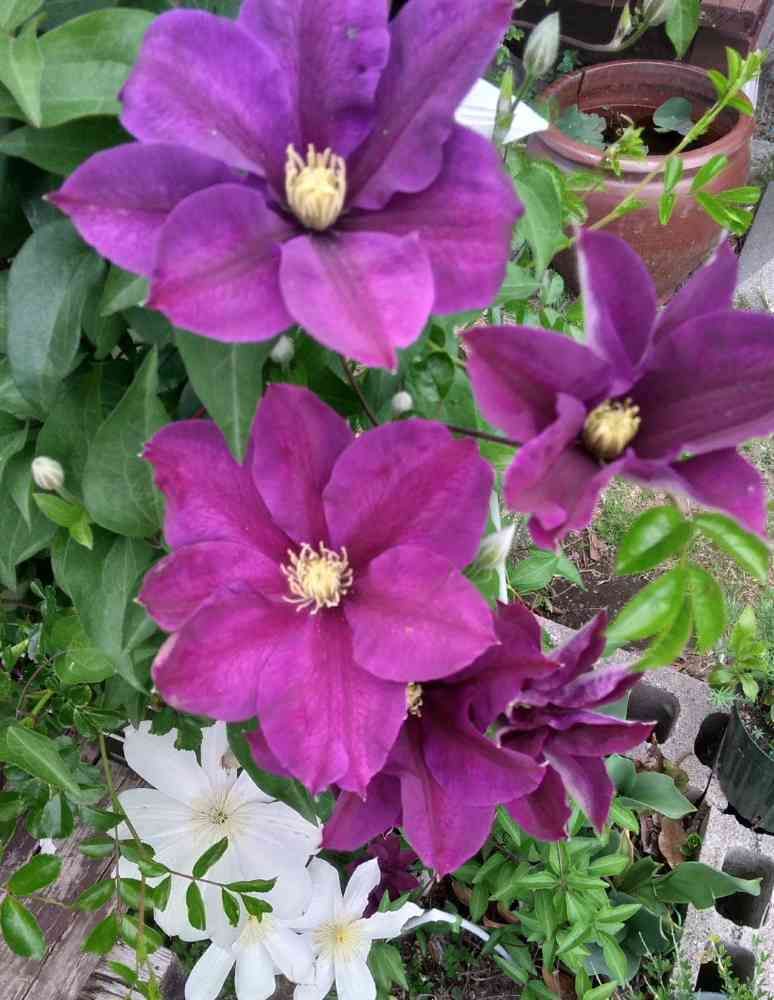 クレマチス❤二色仲良く開花🐝🐝🐝
