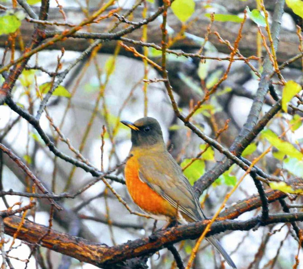 枝に鳥さん、アカハラというのですねー✨🙌