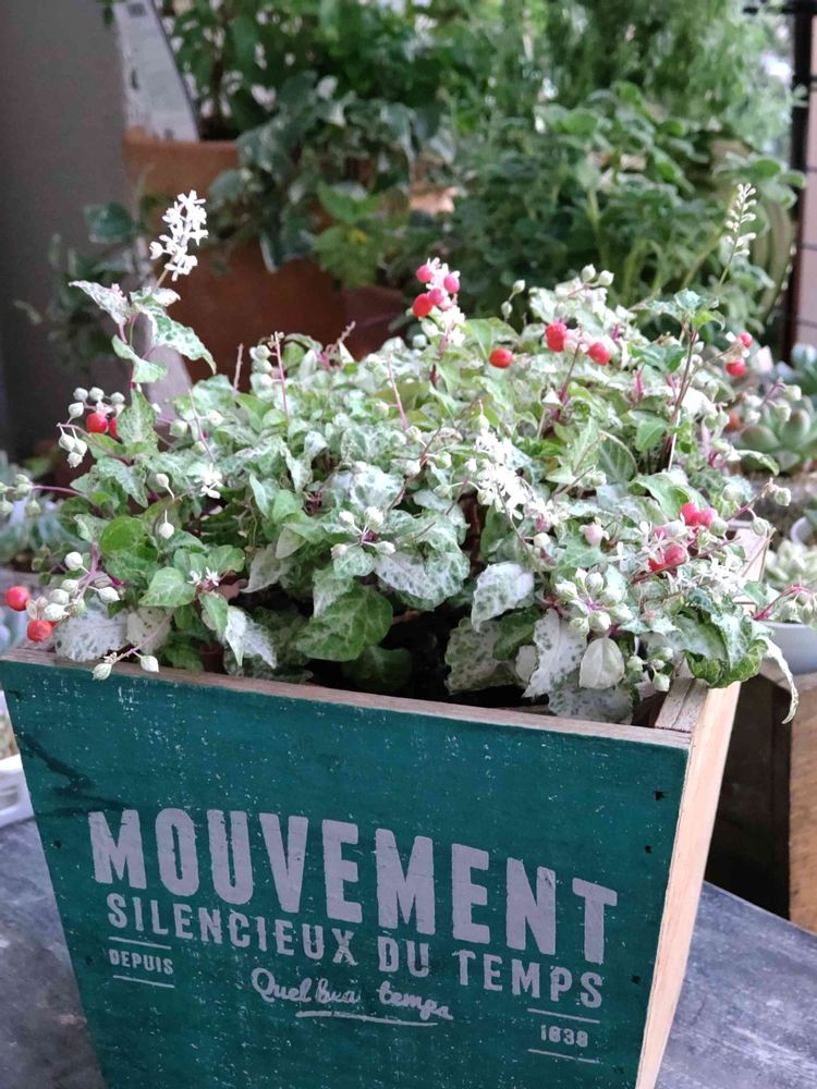 斑入りの葉っぱに、小さな白い花に、赤い実に、お気に入りポイント満載のこです(*ˊᵕˋ*)੭ ੈ