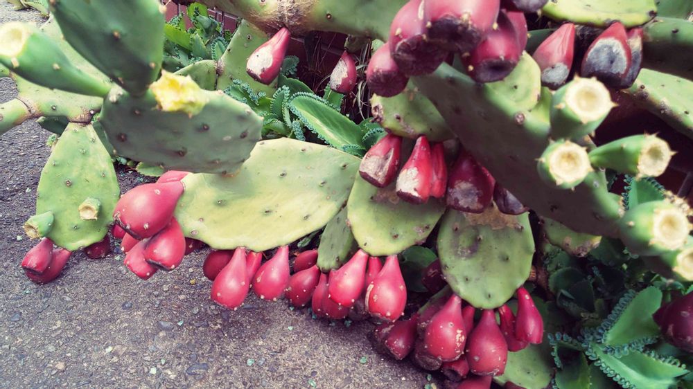 調べてみると、うちわさぼてんの実は食べられるようなのですが・・「有毒の種類もあるから気を付けるように」と書いてあります📖