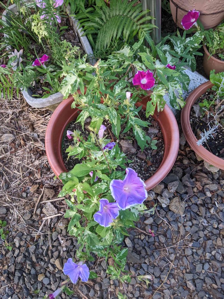 あまり綺麗ではないんですが、支柱のいらない朝顔です。