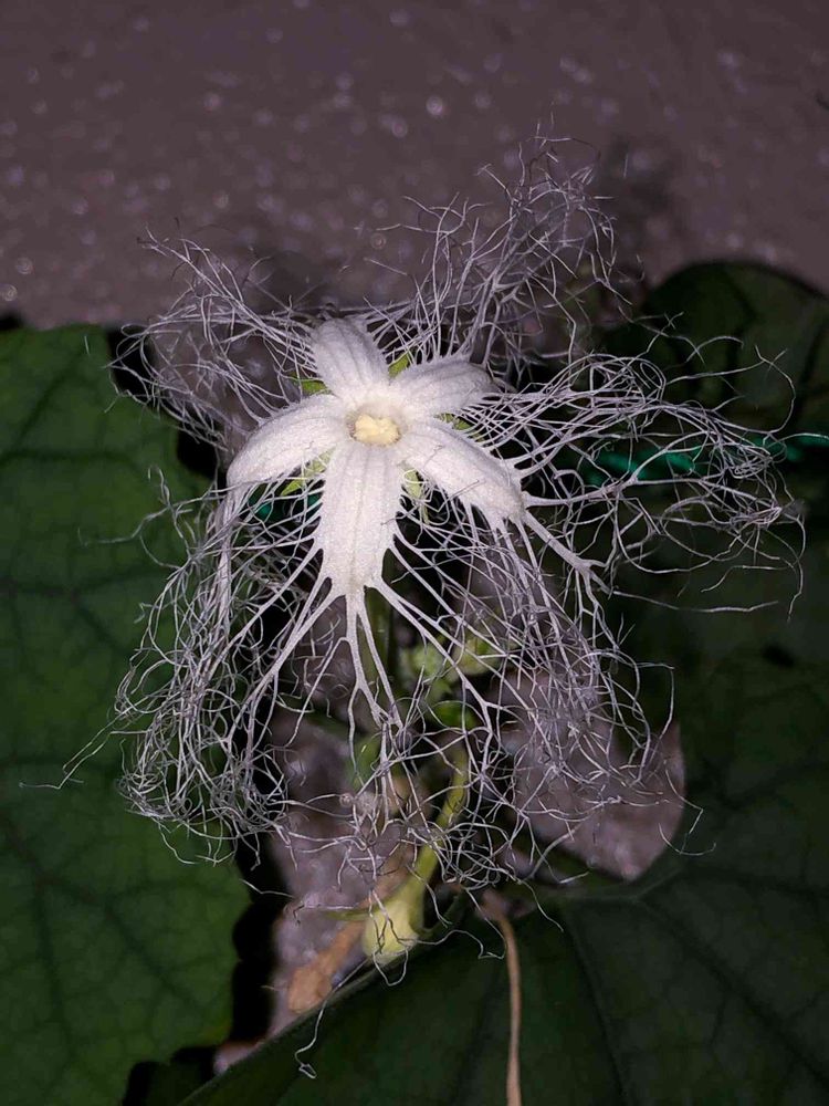 昨晩やっと、ベランダのカラスウリの花の写真が撮れました📸