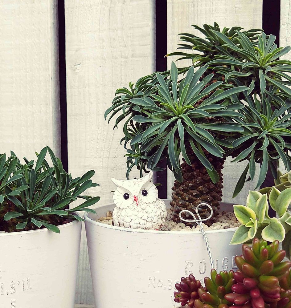 白いフクロウちゃんと蘇鉄キリン🦒が、とてもお似合い❣️
