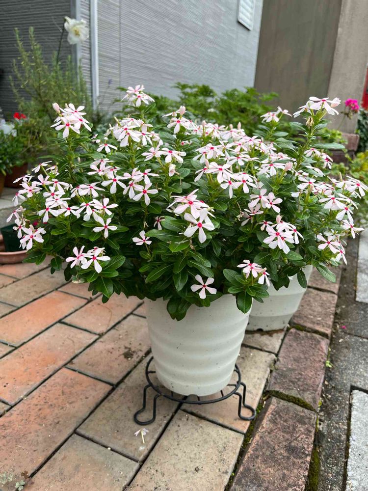今年の夏は暑すぎて葉っぱが黄緑だったり、枯らしてしまったりして、なかなか上手くいきませんでした。ビンカが一番元気です。