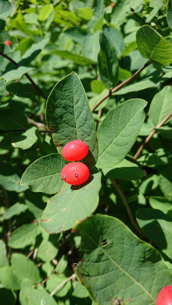 ミーロさんのお出かけ先,オオヒョウタンボク,2個ずつ❣️少し早い実りですが^ ^オオヒョウタンボクだと思います。の投稿画像