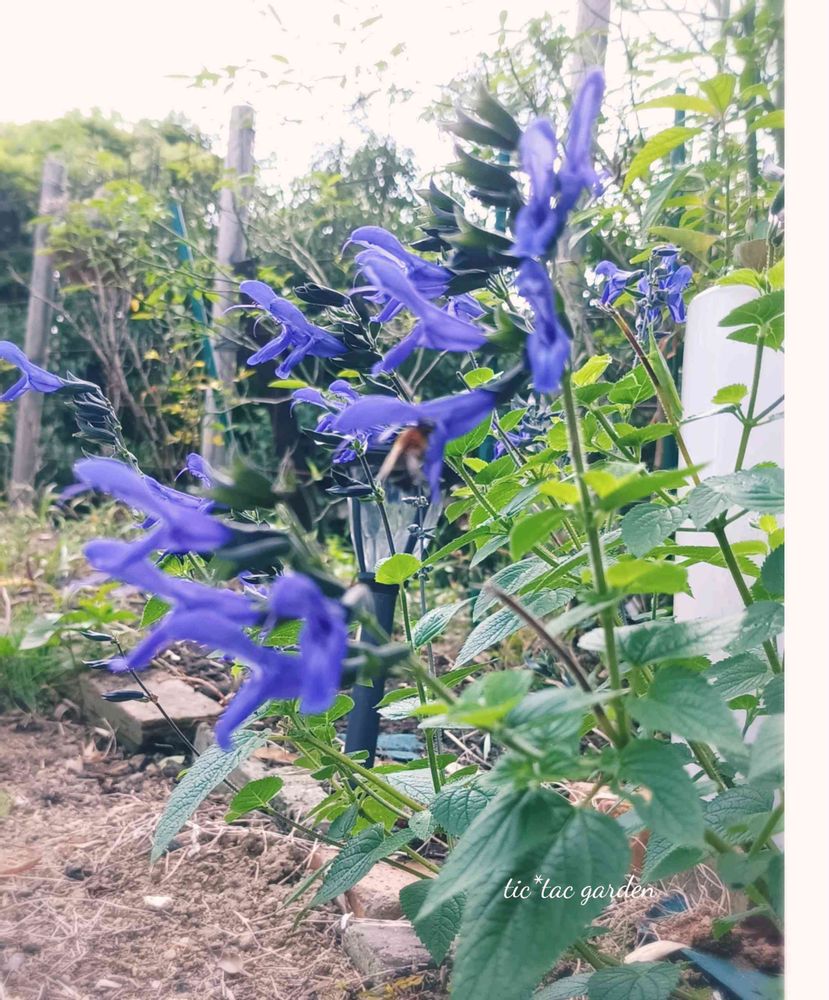 今朝は、地植えしたメドーセージが鮮やかなブルーのお花を咲かせていたので、写真を撮っていたら、🐝さんが蜜を吸いにやってきました。
