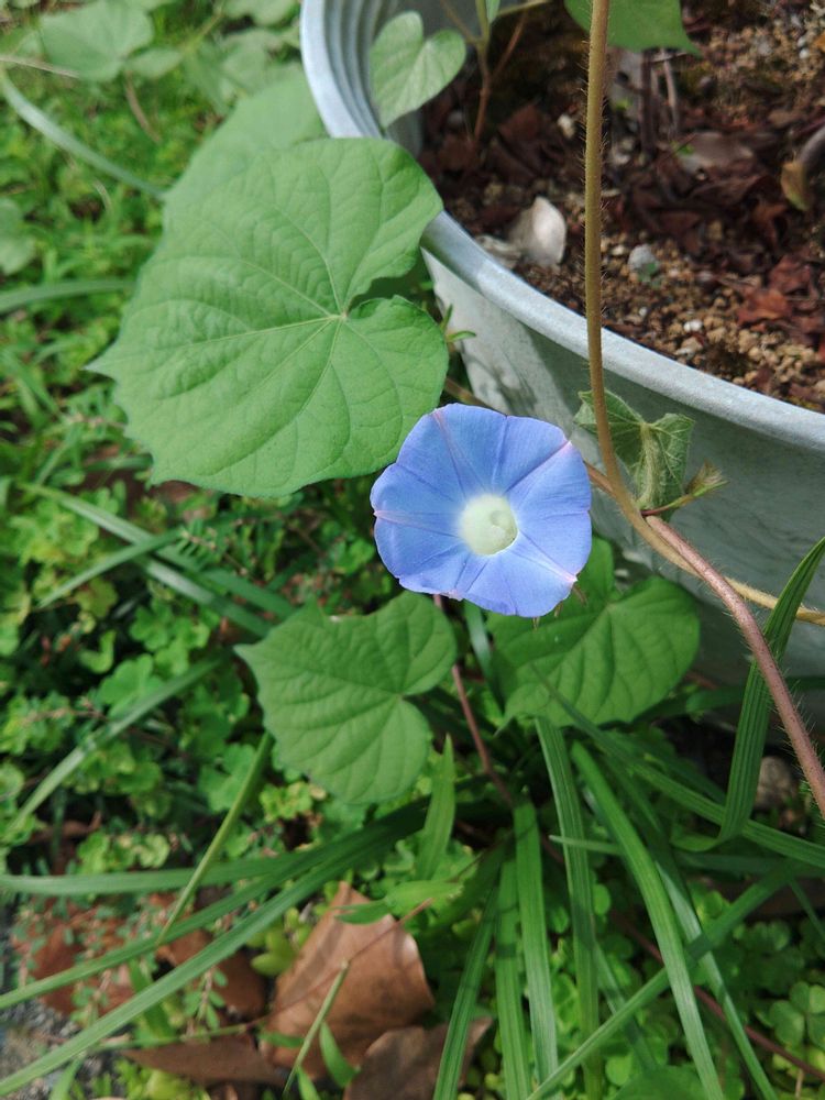 マルバアメリカアサガオが咲きはじめました 年々増えてきた そのうちグリーンモンスターになりそうです😁
