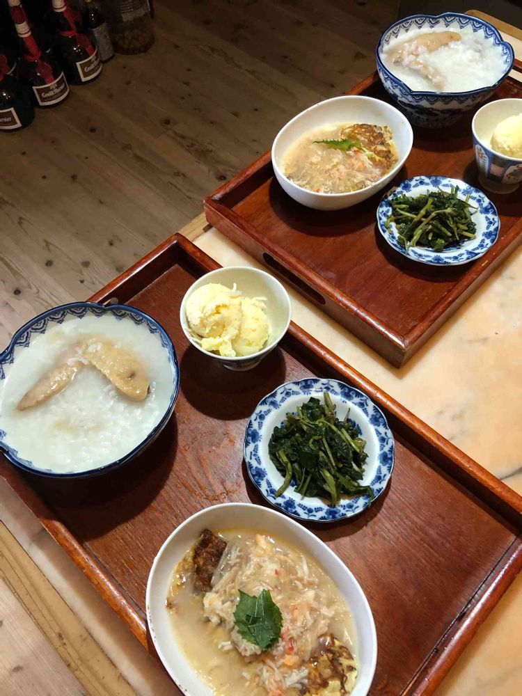 すえすえさんの鳥手羽、生姜、粥,ツユクサ焦がし醤油炒め,冬瓜卵焼き、蟹あん掛けの投稿画像