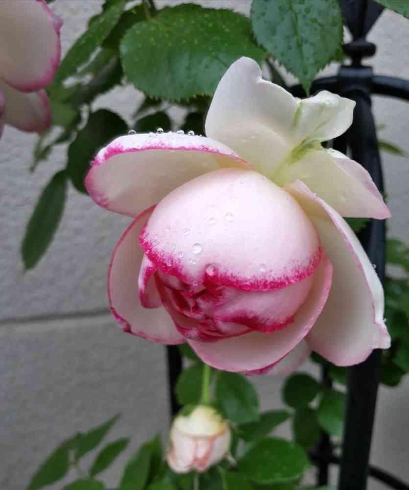 夕方からの雨は止むことを知らず、風とともにバラに吹き付けています😩