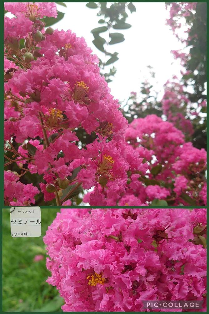 明るい濃いピンク色のサルスベリ セミノール、モコモコに咲いていました😄💗💕💞