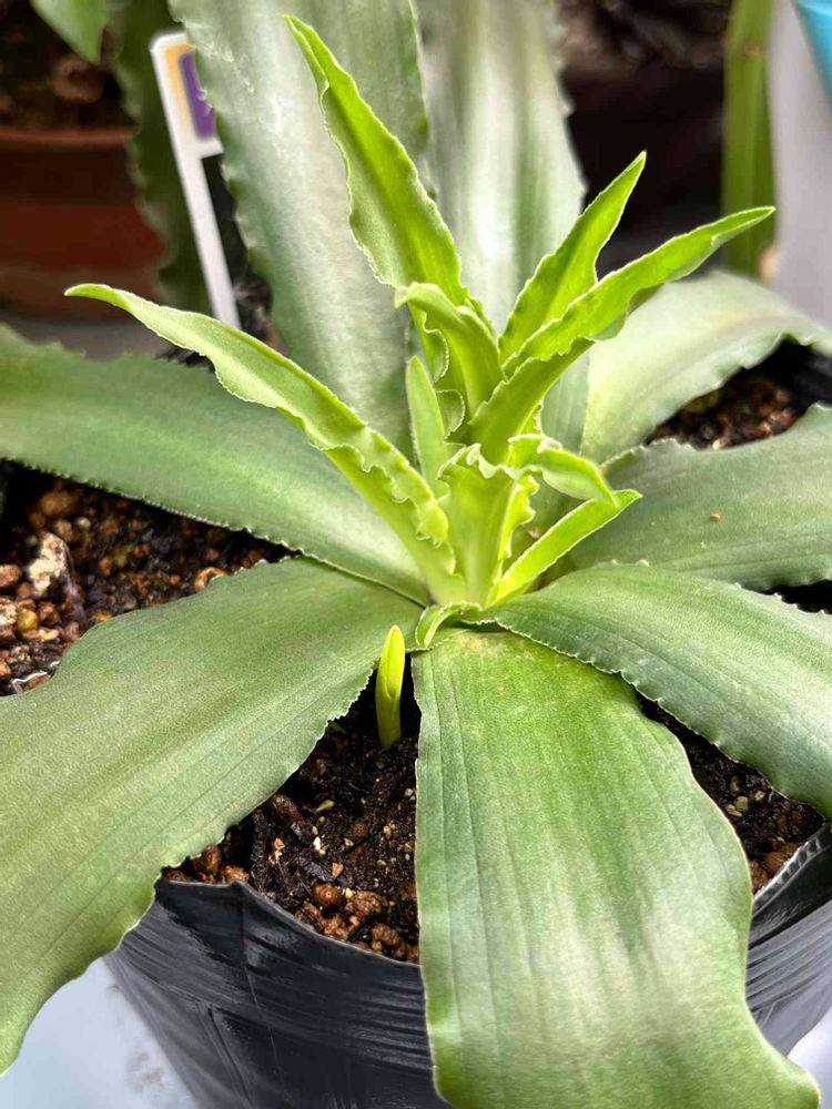 土から何やら🌱筒状の葉っぱが出てる🙄