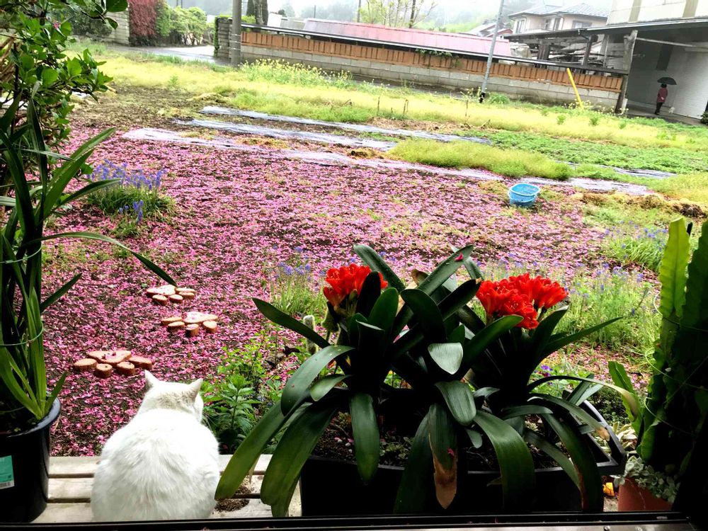 今朝起きたら外一面ピンク色の絨毯になっていたにゃん🐈🌸