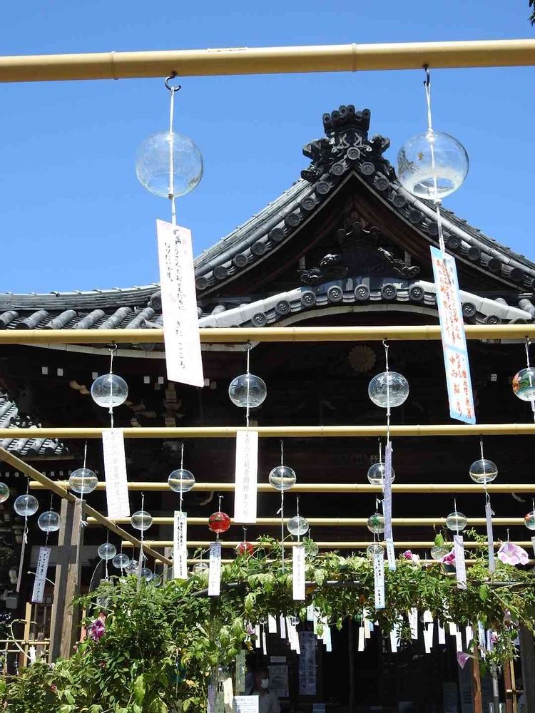 青空とコラボして本堂の前できれいな👂音色を聞かせてくれた👂沢山の風鈴🍀🌿🌱