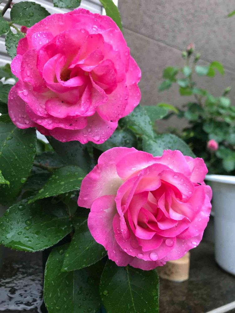 そんな悪天候の中、昨年からの挿し木のバラがつぼみから開花🎀