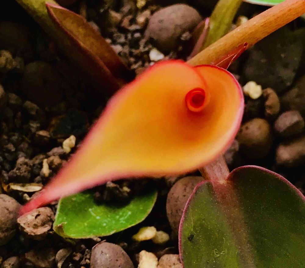 フィロデンドロン・サンレッドさんの新芽。ちょっと鳥の顔みたい?