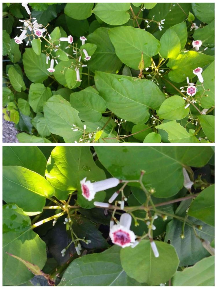 今日また見つけてしまったクレマチスのツルとジャスミンの枝に絡み付いてるヘクソカズラの花💧