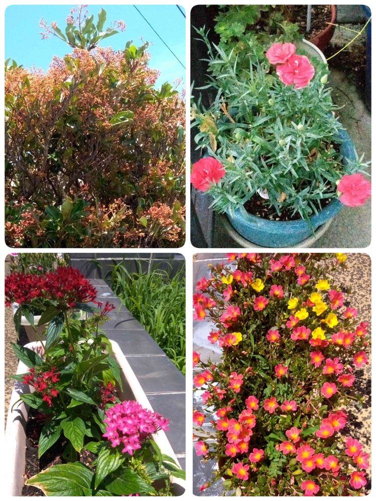 「ご近所さんのお写ん歩①」右上↗️(カ~ネ~ション) 右下↘️(ハナスベリヒユ) (ポ~チュラカ)