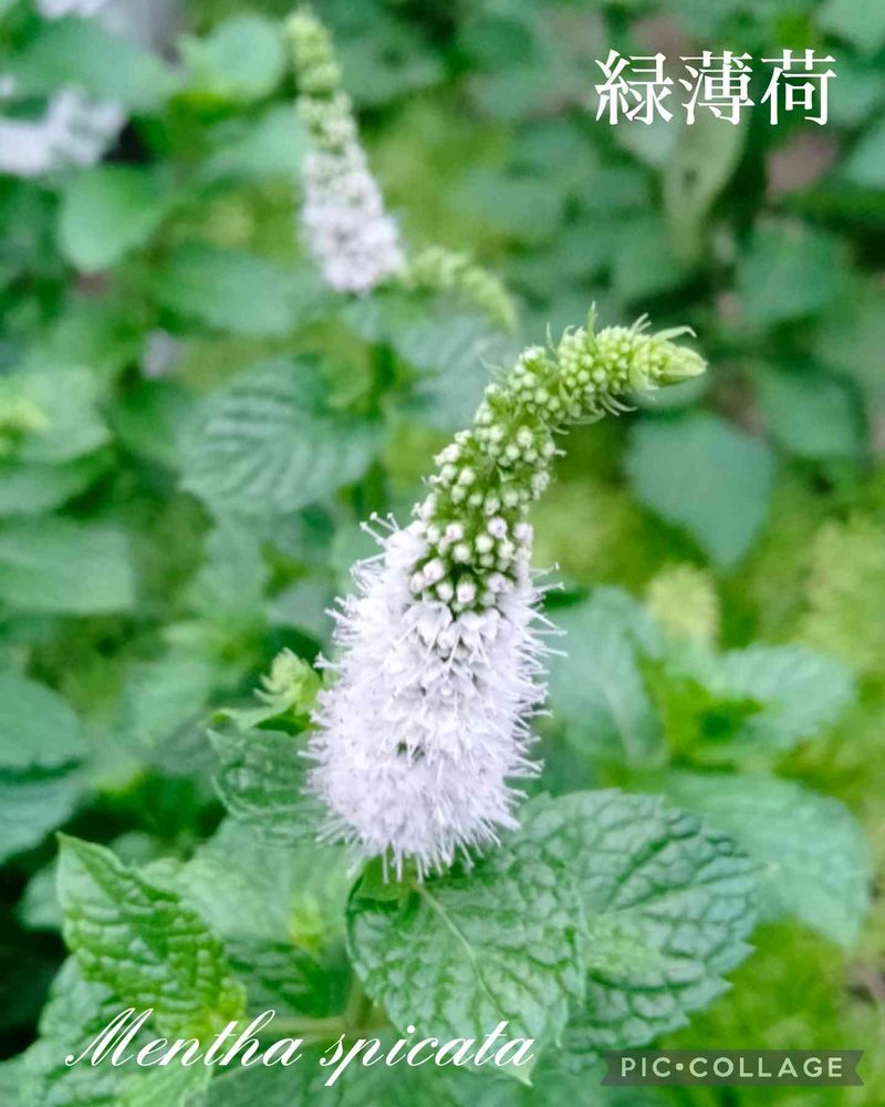 庭の地植えのスペアミントのお花が咲きました🌼🎵わずかにピンクがかって見える白いお花で涼し気です🎐バッタに食われて穴だらけでしたが、蕾が付いた頃から味が落ちるのか、あまり食われなくなったみたいです🌿