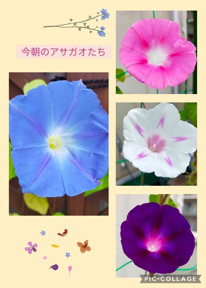 右側のアサガオたちも、いつも私の目👀の届かない上の方で咲いていたので、ピンクと紫は、私にとっては、はじめまして🤗なのですꉂꉂ(ᵔᗜᵔ*)アハハ