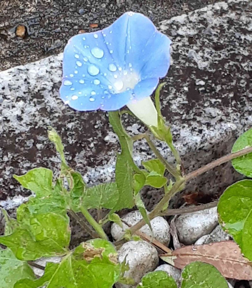 ガレージの隅っこに生えてきた朝顔にも花が咲きました