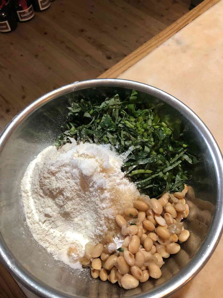 茹で大豆,さつま芋葉柄,こめこ、小麦粉、砂糖、塩の投稿画像