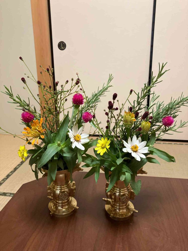 うちは片方は仏具店で買っ た布製の造花です。🙇😂🙇