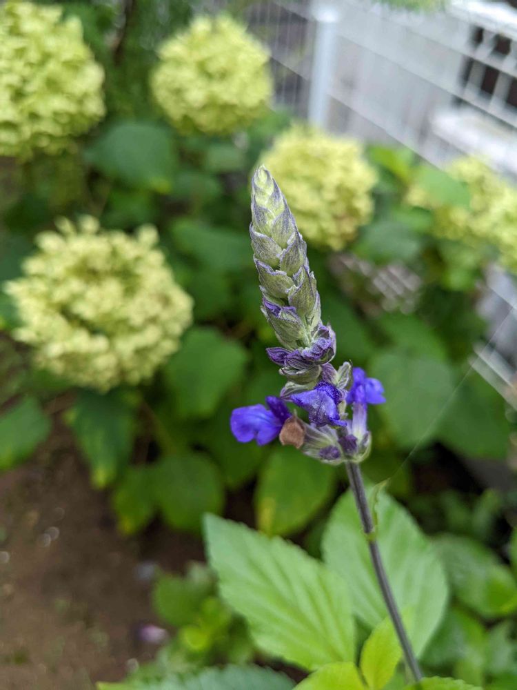 ラベンダーセージ😚2016年に植えてから毎年咲かせてくれてます。日当たり、あまり良くないとこなんですが、背丈がどんどんのびます。後ろのアナベルよりもかなり背高いです。