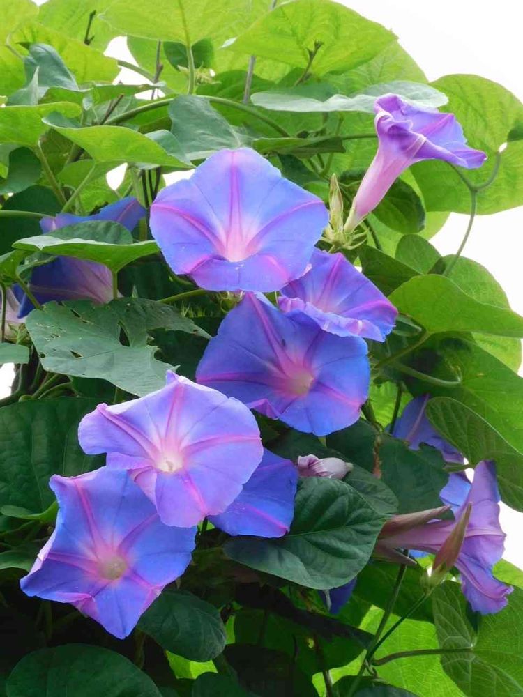 沙羅の木に絡ませた琉球朝顔クリスタルブルー