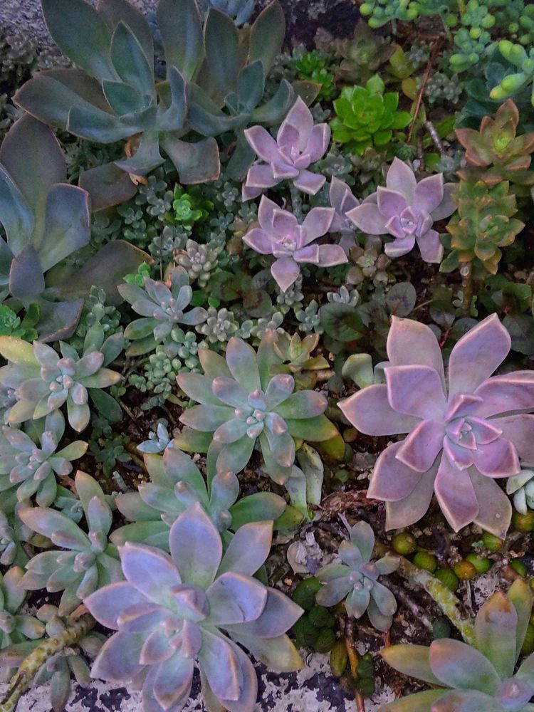 南側花壇の地植え多肉ちゃん達😻💗🤍💚💜