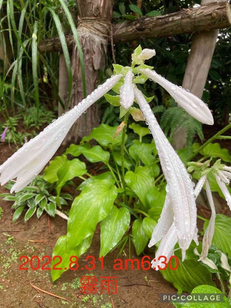 真っ白で大きなお花のギボウシ雨に打たれてる