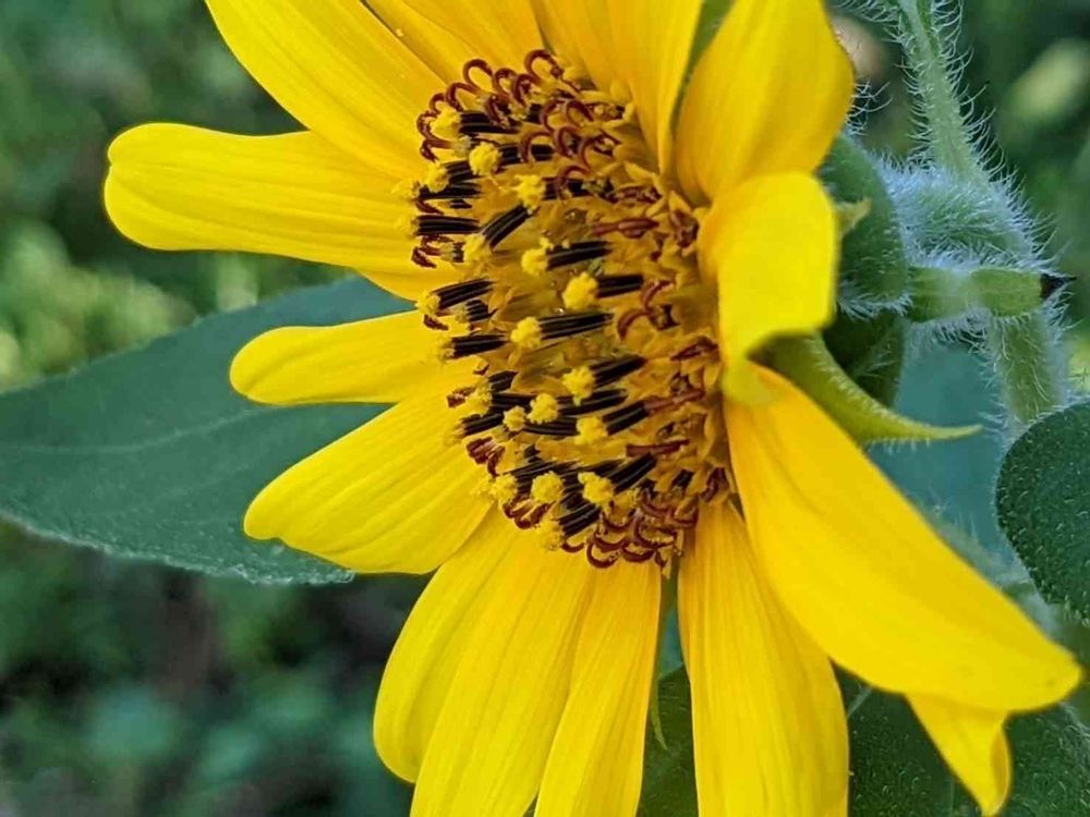 ある日斜面のひまわりを横から写すと 蕊がこんなに盛り上がっていました