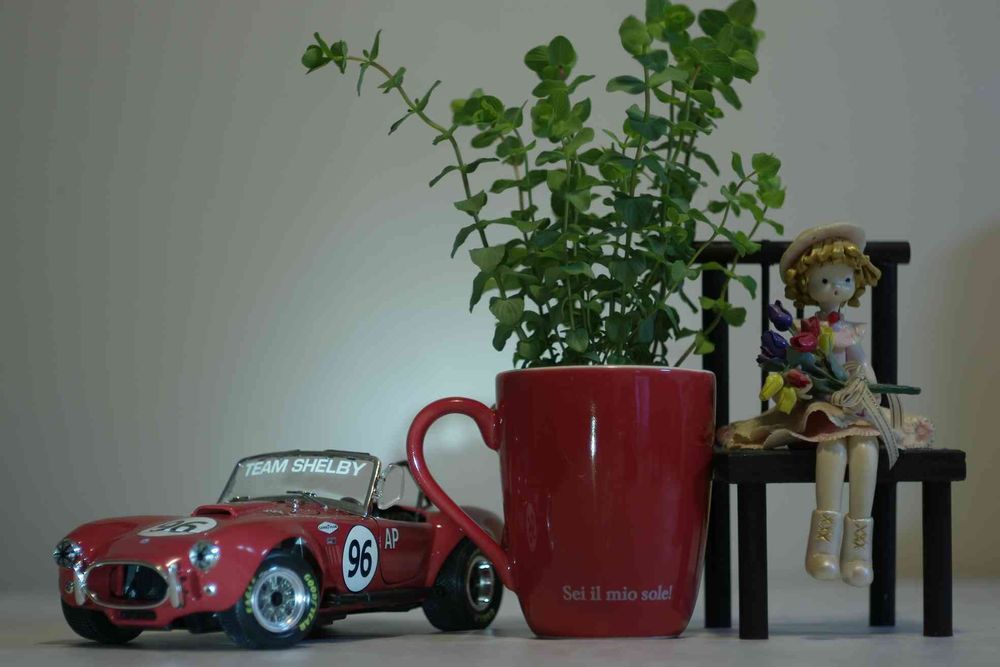 赤いコーヒーカップに入れたので、赤の427コブラと記念写真です🤗