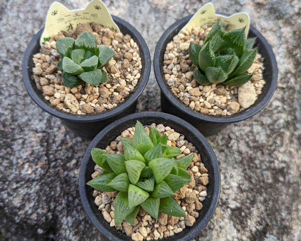 先日、猫タグのハオルチアと初めて出会いました☝️名前がわかりませんが可愛かったので2つお迎え🥰