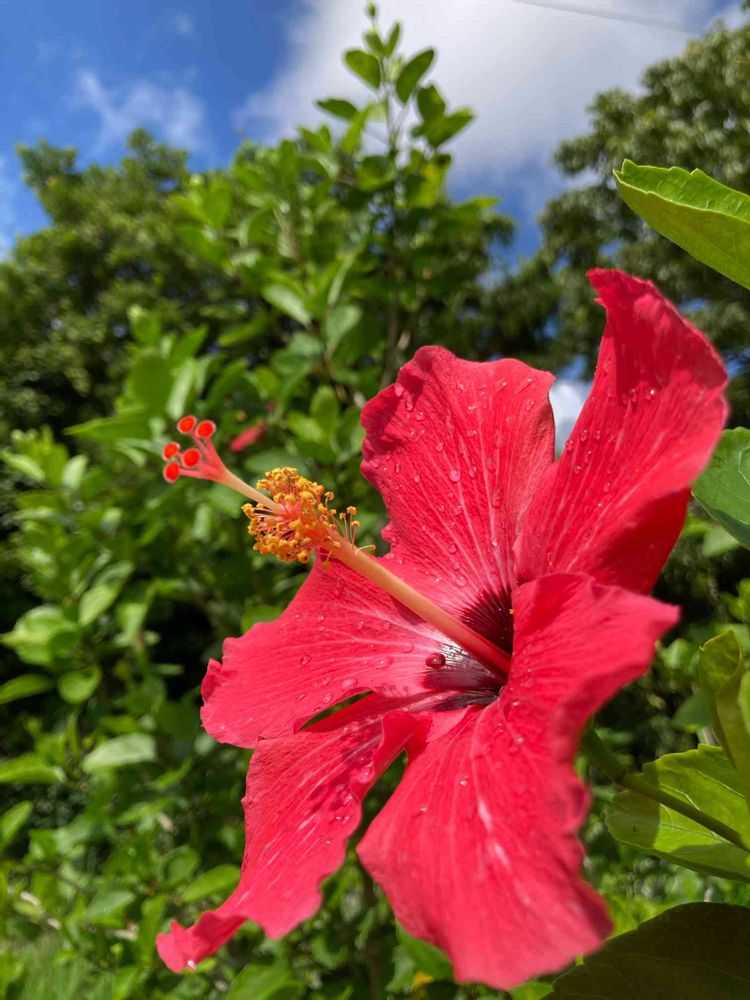 雨上がりの公園でよく出会うハイビスカスです🌺😊💡