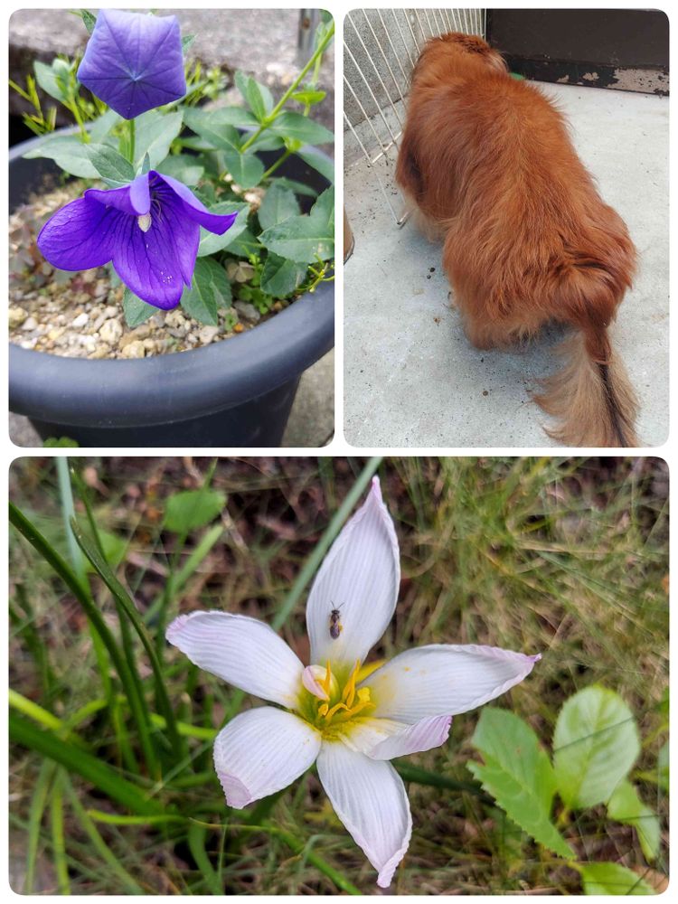 後ろ向きでちゅね〜可愛いです!オケツの日でしたか!🤣お花も綺麗です!^_^