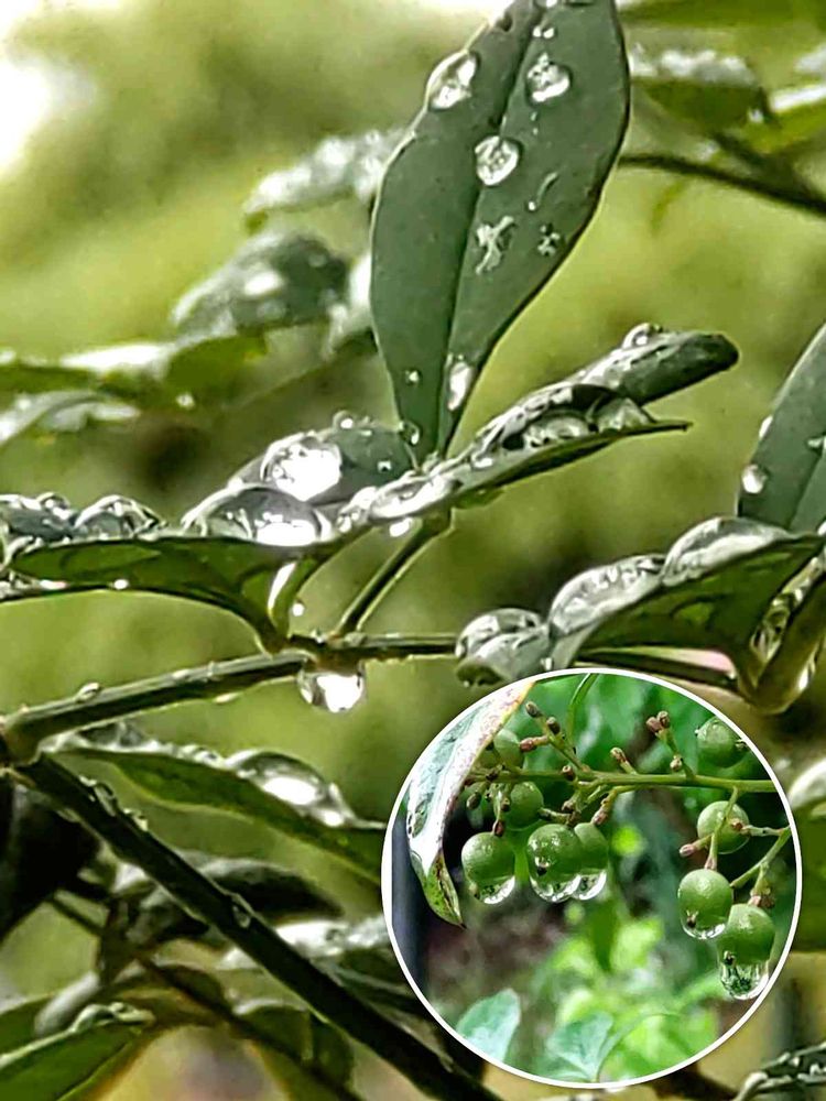 南天の実にも、🫧水滴🫧が溜まりいつ落ちようかなぁ〜と考えているようにも見えました!