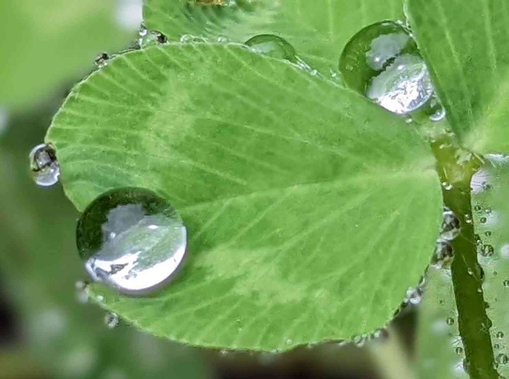 昨日見て頂いた紫詰草の葉の上の雨粒の別バージョンですが 大きな雨粒は水晶の指輪にも帯留めにもなりそう!