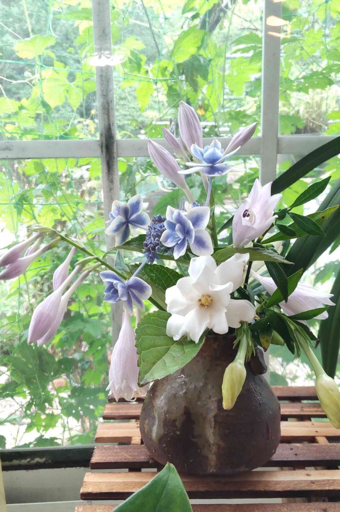 クチナシや紫陽花と一緒にミニアレンジしてますね✨