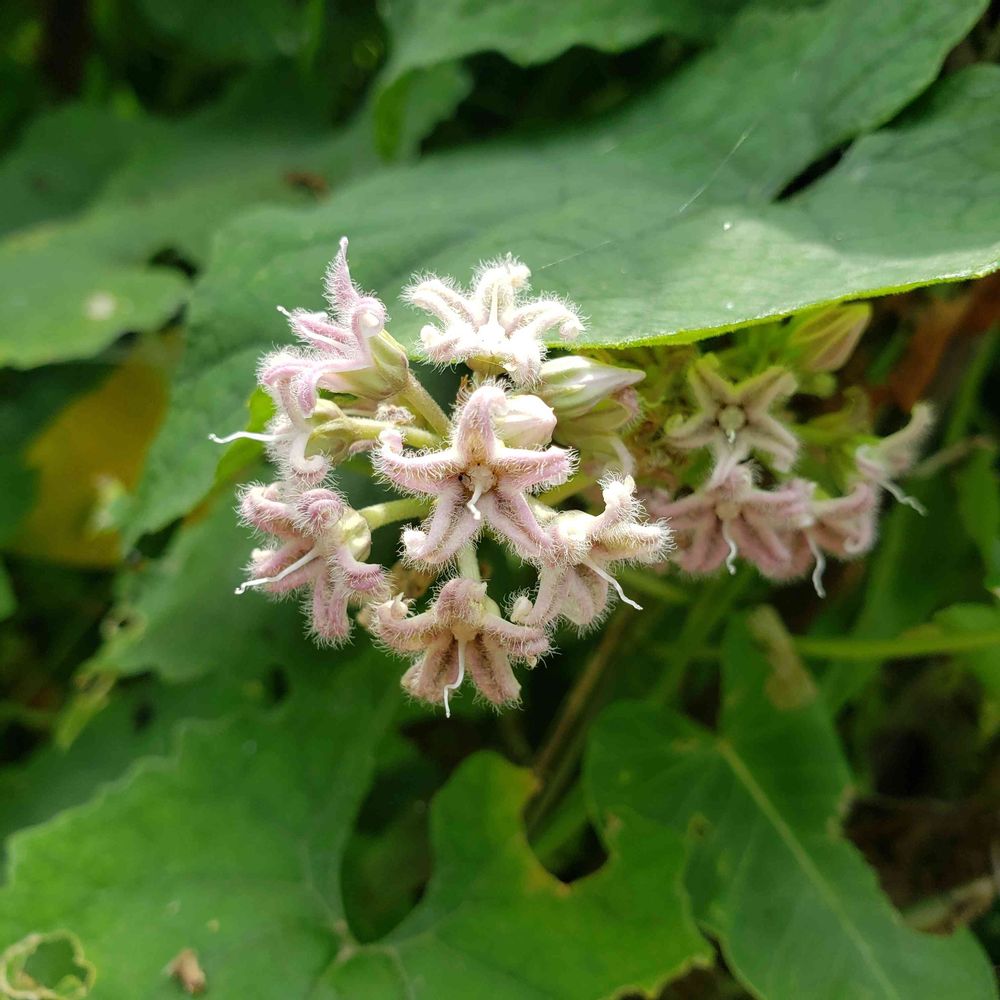 今年は ガガイモがあちこちで咲いてるけれど やはり刈り取られる方が多いですよね😅 去年から家の鉢で育ててます。🌸花は拝めました🎵