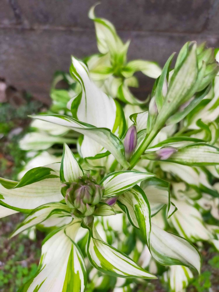 斑入りの葉が、今の時期には涼しげに見えて良いですね。蕾の色も素敵!💜♡♪