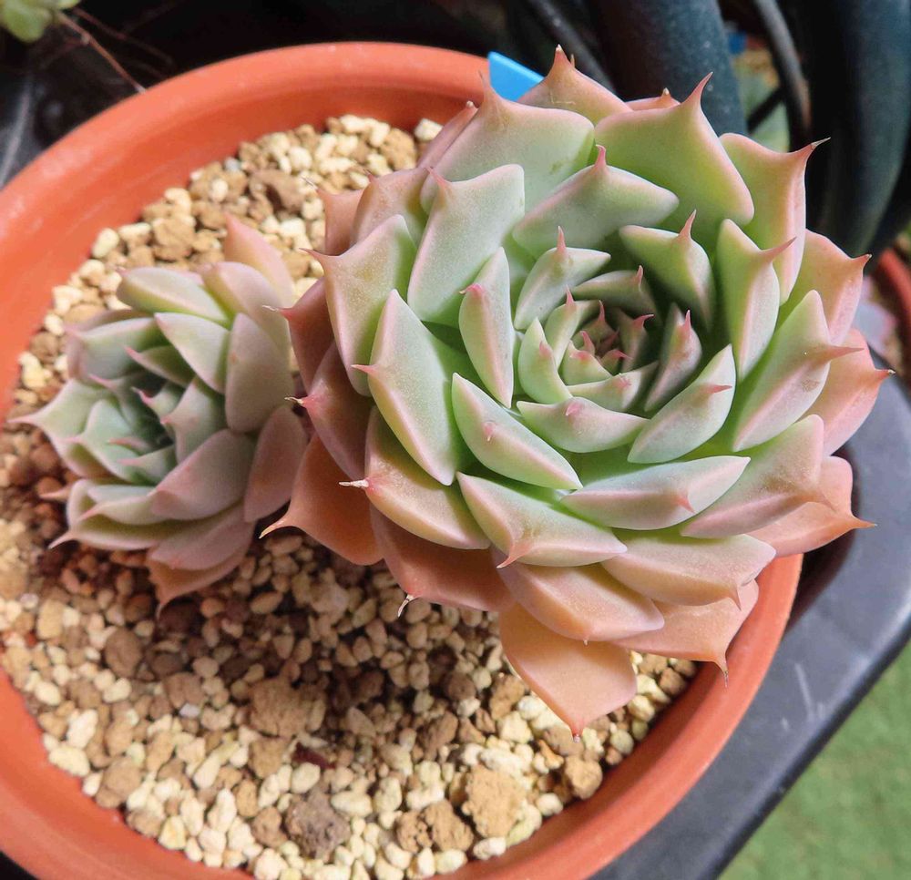 年数を重ねる毎に葉が密になって締まってくる印象のマーガレットレッピン。5年前に買った時は,緑でロゼットも開き気味だったと思う。いつしか夏でもピンクが残るようになった。