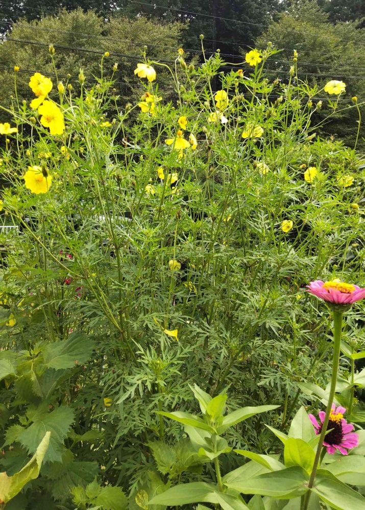 お出かけ先,レモンイエローのコスモス,お隣さんの庭の投稿画像