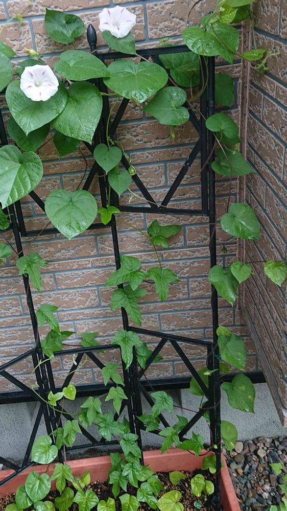 地植えの朝顔が、このプランターのより葉っぱモリモリなのに全く花芽なし‼️