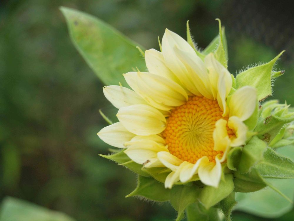 この後この向日葵はウリハムシに(あおちゃんに教えてもらいました)ボロボロに食べられました。。
