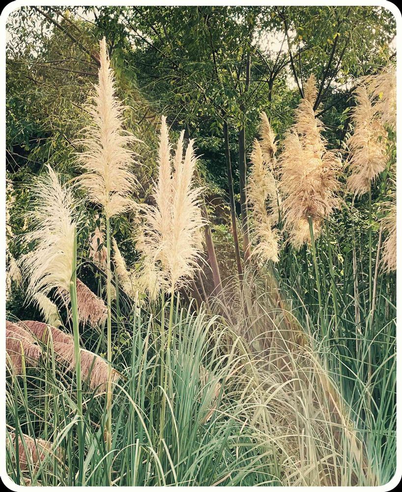 一般に、和名のシロガネヨシよりも、南米の大草原(パンパス)で群落をつくることに因みパンパスグラスと呼ばれることが多いようデス🐶