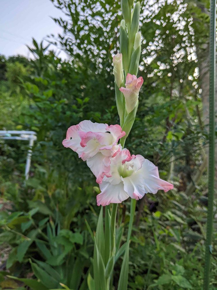 庭の花壇に行ってみたら、ビックリ😱🙀グラジオラスが、咲いていらっしゃいました!🙄😂🌞もう一つは、とっくに枯れたのに、😂🤷