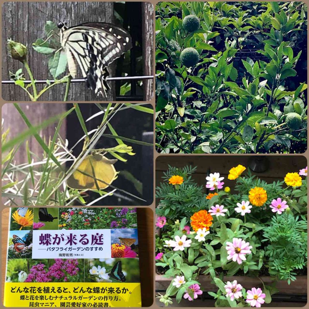 最近、リビングに居ることが多くなり、外を眺めて(ほんと狭い庭です)いて、蝶が🦋やってくるのが楽しみに。温州🍊の木も鉢植えですがあるとアゲハが来てくれて。